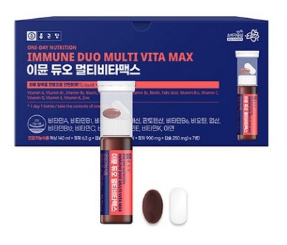 면역력 높이는 이뮨 멀티비타민 베스트5로 추천 드리는 다섯번째는 종근당 이뮨 듀오 멀티비타맥스 입니다. 지용성 비타민을 담은 캡슐과 수용성 비타민, 미네랄을 담은 정제, 흡수가 빠른 자몽맛의 액상으로 만들어진 올인원 멀티비타민 입니다.