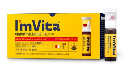 종근당 건강 아임 비타 멀티비타민 이뮨 샷은 하루 1병으로 고함량 비타민을 채울 수 있는 제품 입니다. 영국과 독일 프랑스 등 유럽산 고품질 프리미엄 비타민만을 사용했습니다. 종근당건강 이뮨은 16종의 영양성분을 액상과 캡슐 정제로 하루 멀티비타민 함량을 채웠습니다.