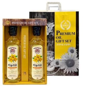 명절에 1~2만원대로 가장 많이 선물 하는 기름 세트에는 식용유나 올리브오일 선물 세트가 있습니다. 요리할 때 거의 대부분 기름을 쓰기 때문에 명절 때 받은 선물로만 사용해도 기름 떨어질 날이 없다는 우스갯소리가 있을 정도인데요, 가장 저렴한 가격의 카놀라유 부터 해바라기씨유, 포도씨유, 올리브유 등 종류별로 구입 가능한 가성비 좋은 선물 입니다.